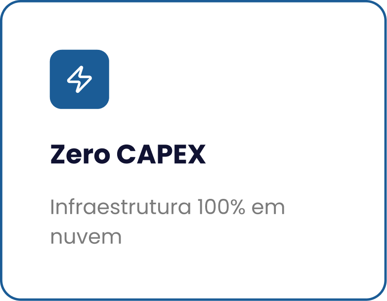 Tecnologia 100% em nuvem com zero CAPEX. Implante em horas, escale sob demanda e mantenha seu backbone livre para crescer.